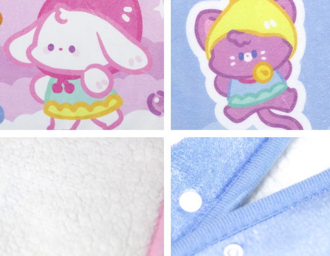 포근하고 따뜻한 안감과 부드러운 극세사 원단에 귀여움을 담았습니다.